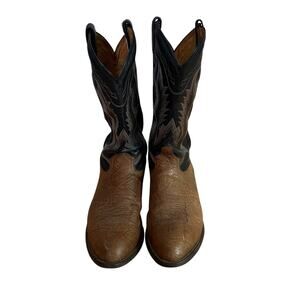 Tony Lama Brown & Black Leather Cowboy Boots Mens 11 D Western Rodeo 6171