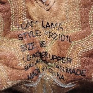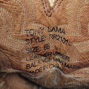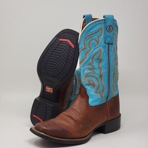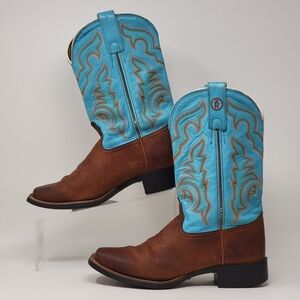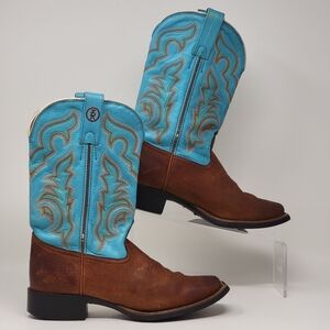 Tony Lama Brown Cowboy Dancehall Boots Turquoise Shaft Women's Sz 6B Pre-owned