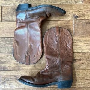 Tony Lama Brown Leather Cowboy Western Boots Distressed Rodeo