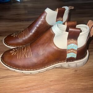 Tony Lama Brown Leather Slip-On Western Chelsea Boots Women’s Size 8