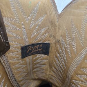 Tony Lama Embroidered Leather Cowboy Boots Brown Women 7 Mid Calf Pointed Toe