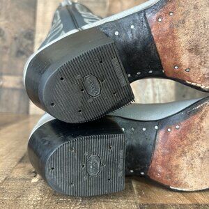 In used condition. Boots have marks, scuffs, scratches and show heel wear (See photos). Shipped with USPS mail.