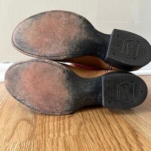 Tony Lama Leather Cowboy Boots Womens 6.5M Embroidered Western Boho Red Brown