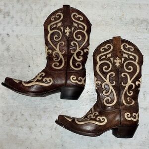 Tony Lama VF3024 Ladies Vaquero Western Boot with Earth Santa Fe Leather Foot with Cream Inlay and a Narrow Square Toe