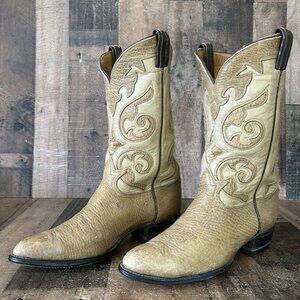 Tony Lama Vintage Bullhide Leather Inlay Cowboy Boots Mens 12 D