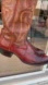 Color: The boots are two-toned, with a dark, reddish-brown lizard foot and a lighter brown shaft with orange/tan stitching.