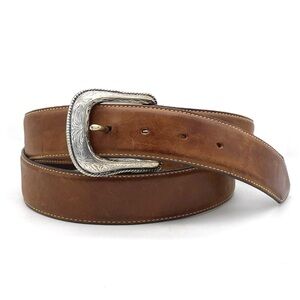 Tony Lama Western Belt Brown Leather Silver Concho Braided Accents Mens Size 40