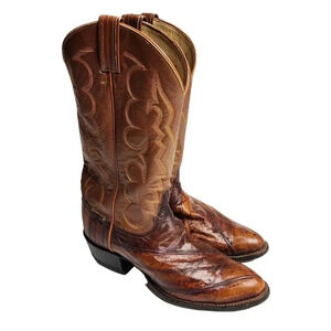Tony Lama Western Boots Eel Leather Cowboy Brown 8111 Wingtip Size 10 B