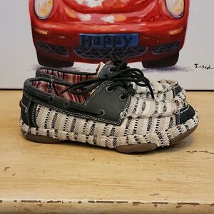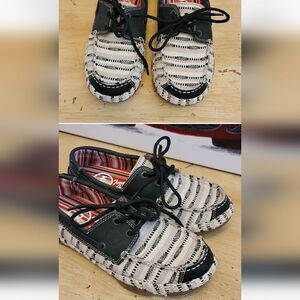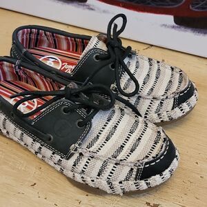The Lindale Black Tan II is a Women's casual shoe built for utility and style. Its classic cream and black striped canvas exterior features a charcoal leather collar with leather laces and panels on both the toe and heel. The classic structure is durable to everyday wear and tear and the rubber outsole provides traction and the cushioned insole guarantees comfort and a relaxed fit for running errands or lounging around the house.