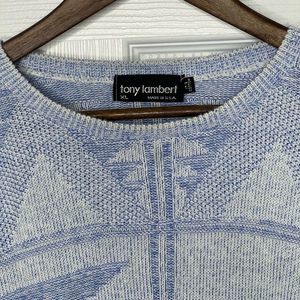 Tony Lambert Blue Crew Neck Textured Knit Long Sleeve Cotton Pullover Sweater XL