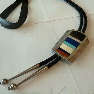Tony Sanchez Sterling Silver Inlay Bolo Tie Turquoise Lapis Coral
