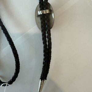 The bolo features a black braided leather cord and sterling silver tips, crafted with the exceptional quality Sanchez is known for. Measuring approximately 40 inches total length (flat, including tips), this bolo is ideal for both wearing and displaying.