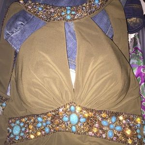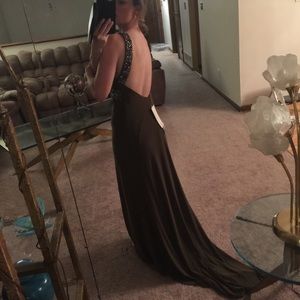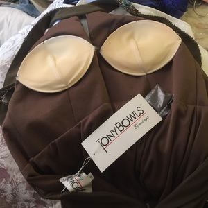 Tony bowls evenings pageant gown. Originally a size 6 taken down to a size 4 for someone who is 5'5 wearing 5 inch heels. Padding was added. Nwt I never ended up competing so my loss is your gain. I have matching Jim ball earrings in another listing.