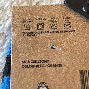 Tony The Tiger Kelloggs  Cool Socks, Blue Orange and black with a picture of Tony The Tiger on the top and tiger stripes on the bottom