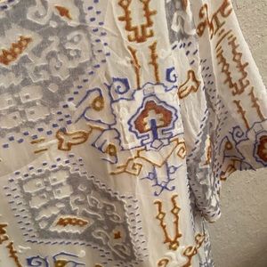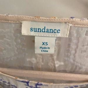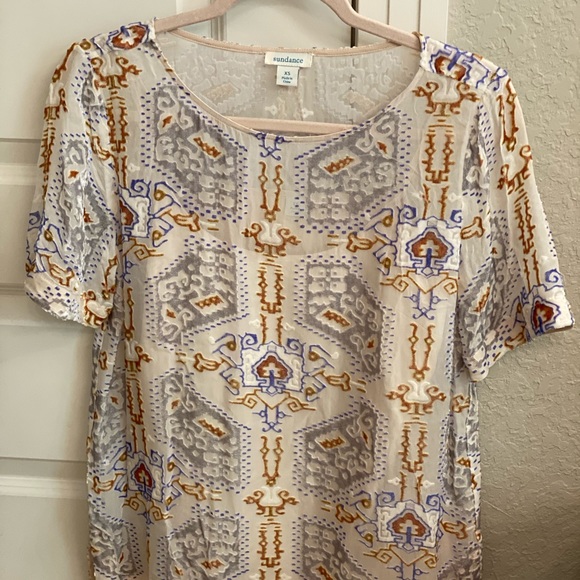 Sundance rayon/silk blend top with a camisole. Colors are beige,tan,blue and gray.