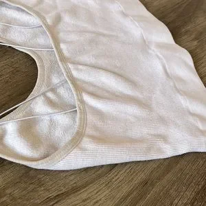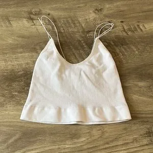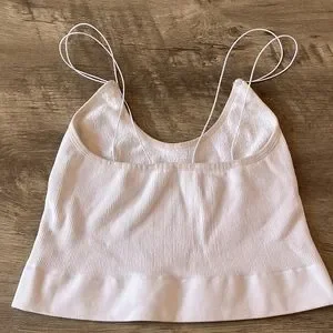 White crop stretchy brami. Worn with slight discoloring on top seem