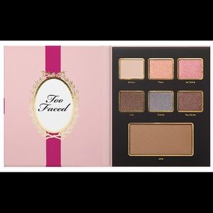 Great quality eyeshadows, used once! The bronzer is very pretty and all eyeshadows are very pigmented. The only matte shadow is “Amour” and the rest are shimmer. I also have the plastic sheet from original packaging to cover the shadows.