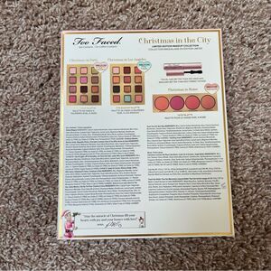Too Faced Christmas in the City Limited Edition Makeup Box Set. Two eyeshadow pallets, a travel size black better than sex mascara, and a powder blush pallet. New, and would make a super cute gift any time of the year! Colors that work for summer too!