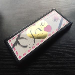 NEW! AUTHENTIC! Too Faced Love Passionately Pretty Eye Shadow Collection. Includes 15 eye shadows and a black waterproof eyeliner. Shadows are grouped into three color schemes (Pure Love, True Love, & Forbidden Love) and have accompanying application guides. Shadows feature a combination of mattes, satins, shimmer, and glitters. Case is good quality thick plastic and has a 5" X 1.75" mirror inside.