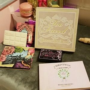 all Palettes listed are rare htf too faced eyeshadow and face palettes. If interested in and would like more information feel free to ask. Glamour to go pocket palette , shadow Bon Bon collection set, French & Fabulous majestic makeup collection palette(super rare) . Too Faced Love Lisa Beauty Battle Box, Christmas in MY Merry Macarons, white chocolate chip. ** also HAVE the chocolate shop palette, and the sweet indulgences tin pink palettte..prices will vary from each palette.
