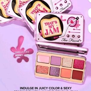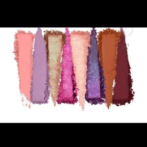 Vibrant eyeshadow palette with a mix of purple, pink, and gold shades. Perfect for bold looks.