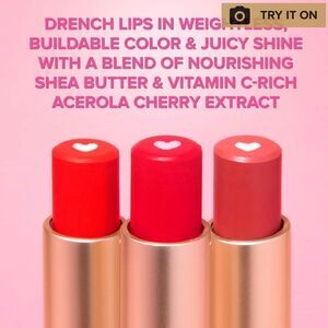 Glossy, easy-to-wear lipstick that drenches lips in weightless, buildable color & juicy shine with a moisturizing heart-core blend of nourishing shea butter and vitamin C-rich Acerola Cherry extract.