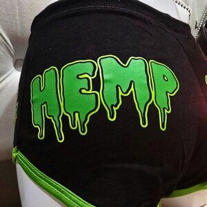 Manifest your playful side with these Too Fast Booty Shorts—emblazoned with a bold “Hemp Wh*re” graphic in vivid neon green dripping letters.