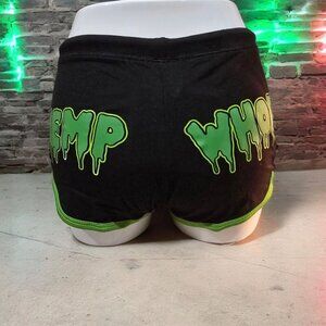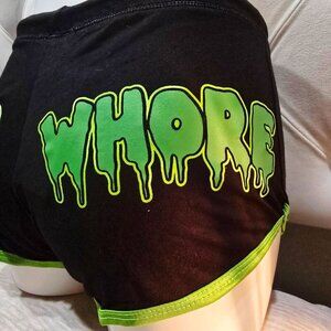 Too Fast “Hemp Wh*re” Booty Shorts – Black w/ Neon Green Trim – Alt-core Rave