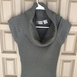 Too Hot Sweater Dress SzS Gray Acrylic Cap Sleeves Tab Details Pull Over Pre-Owned