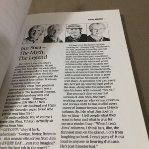Jim Shea’s columns have long been a favorite for their lighthearted, self-deprecating wit and newsroom humor. This collection captures the voice that made him one of the Hartford Courant’s beloved personalities.
