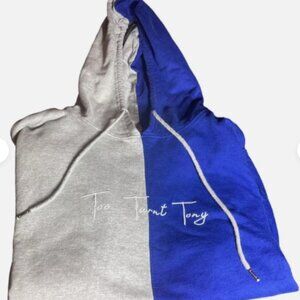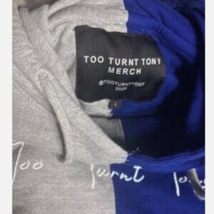 Too Turnt Tony Split Color Hoodie Sweatshirt Blue Gray Too Turnt Tea Rare Men L