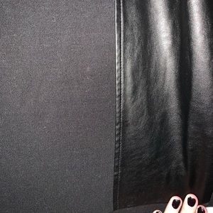 I absolutely love this skirt. I’m sad it doesn’t fit anymore. I’ve worn it several times but it’s still in great condition. Great for professional wear. Knee length with leather detailing