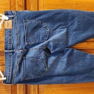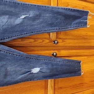 these midrise skinny jeans have a raw hem at the bottom and factory rips. they have quite a bit of stretch to them for comfort and movement. they are darker wash and a 12L