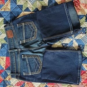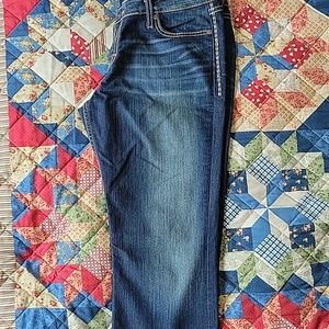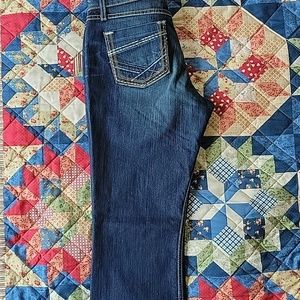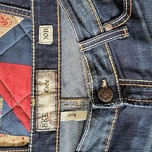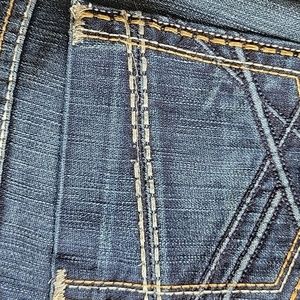 Jean are new without jeans. the only flaw is part of the stitching(design area) let loose. cosmetic only. There is a close up of the stitching in one if the pics.