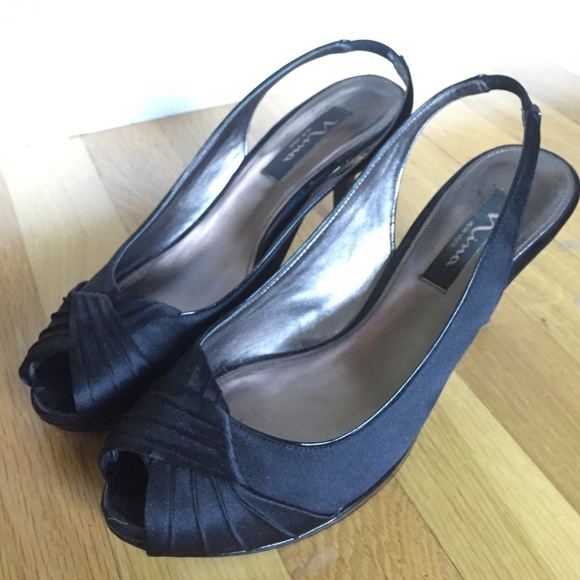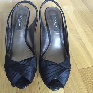 Black peep toe heels with strap. Only worn once for an hour. In great condition.