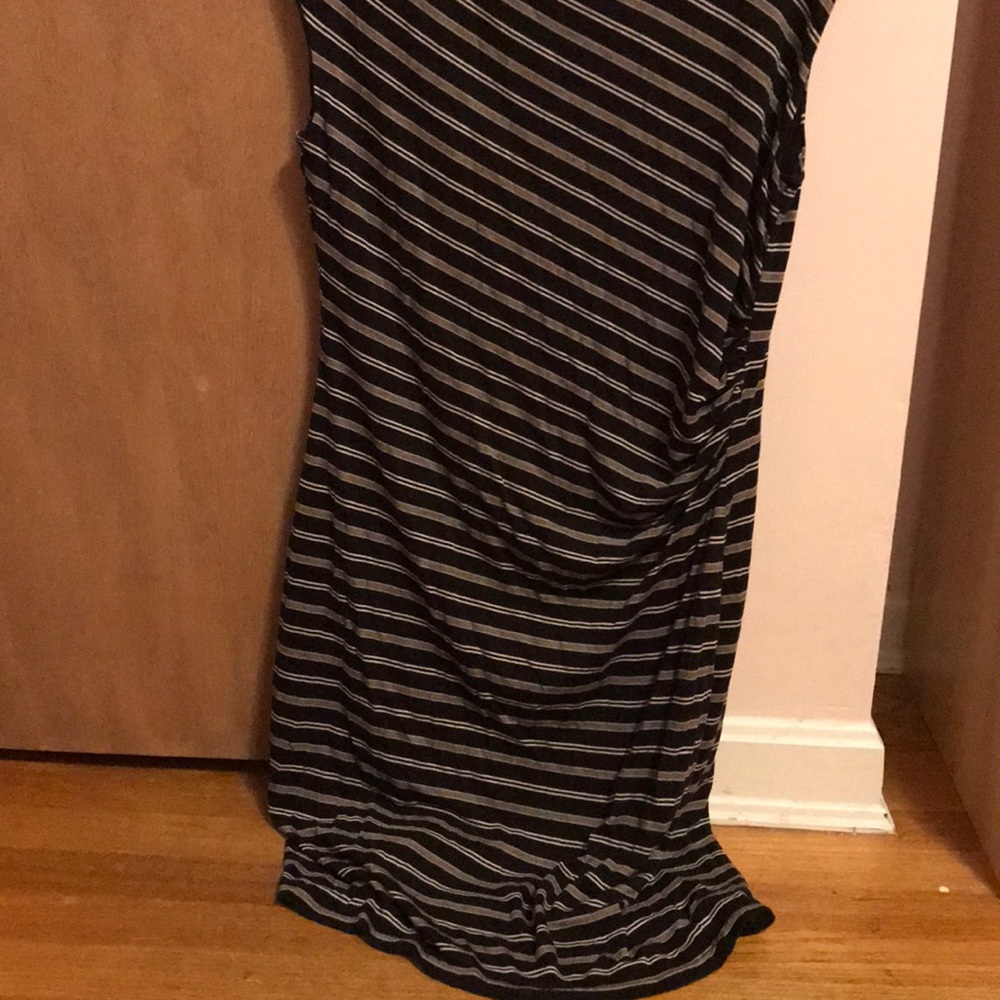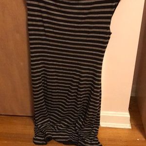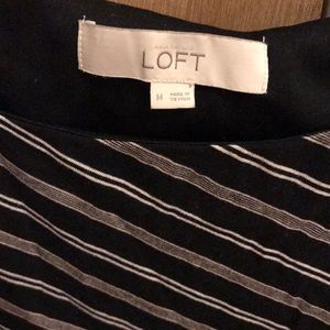 Sleeveless black dress, with white horizontal stripes, from Loft. Lightly used, in good condition.
