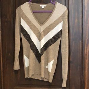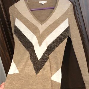 Tan colored sweater. Great condition, New York and Co women’s size extra small. Long sleeve dressy sweater.