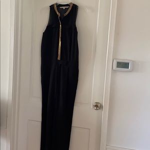 Rachel Roy pants jumpsuit with gold studded trim. Side pockets & back pockets.