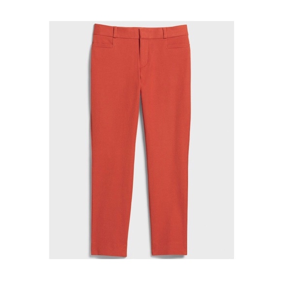 Mid rise cropped pants with hook and bar closers and front zipper.