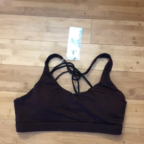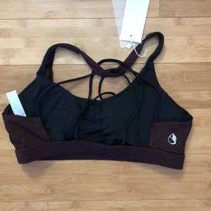 Maroon and black calico sports bra. With elastic back hatching pattern no adjustable straps.