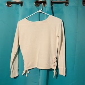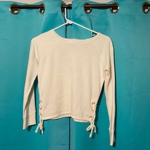 Cropped cream colored sweater with ties on the side