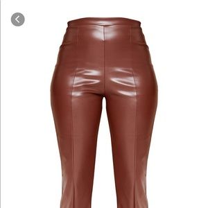 Chocolate Brown faux leather wide leg / split leg pants.