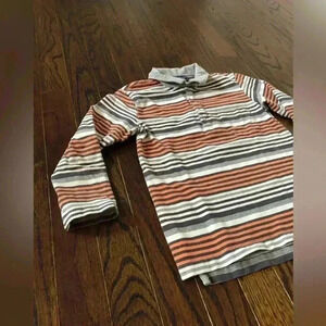 Details: Cotton/Elastane blend. Super soft and stretchy! This polo has functional 1/4 buttons and chest pocket. Striped design. Original MSRP $44!