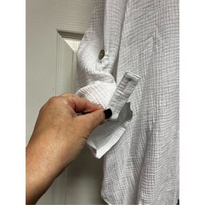Toofan White Gauze Lagenlook Mother of Pearl Back Button Tunic Shirt sz 1X NWT