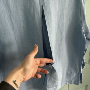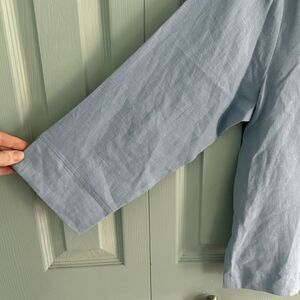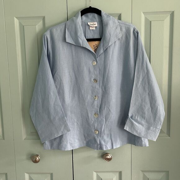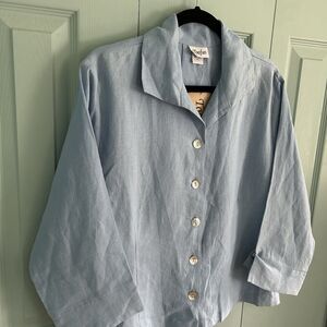 Toofan Womens Linen Light Blue Button Up Blouse Medium Relaxed Lagenlook