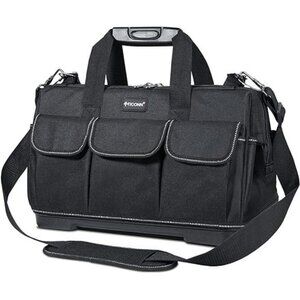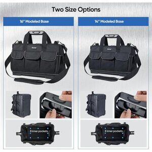 🧿🛠[PRACTICAL AND FUNCTIONAL] Wide mouth opening makes loading larger tool easy. 8 side pockets on the outside give you easy access to small tools you need the most. Molded base makes bag bottom waterproof and abrasion-resistant. It also helps to maintain the shape of this tool storage tote.