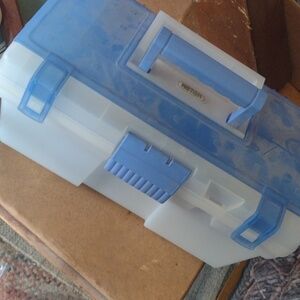 Organize your tools efficiently with this clear plastic storage box. Perfect for keeping your workspace tidy.Never used,tools included