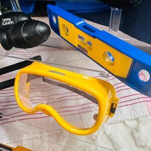 Just like home Toys are in good, gently use condition. Belt is in working order. Tool set is not complete only comes with what is shown.