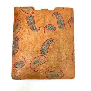 Tooled Faux Leather Paisley Tablet Case - Tan/Green/Red, 10.5"x9"