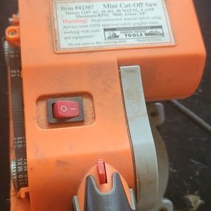 Mini Cut Off Saw: $45.00. Item#42307 Motor: 110V AC, 60HZ, 90 Watt .9AMP Maximum RPM:788, Arbor: 3/8